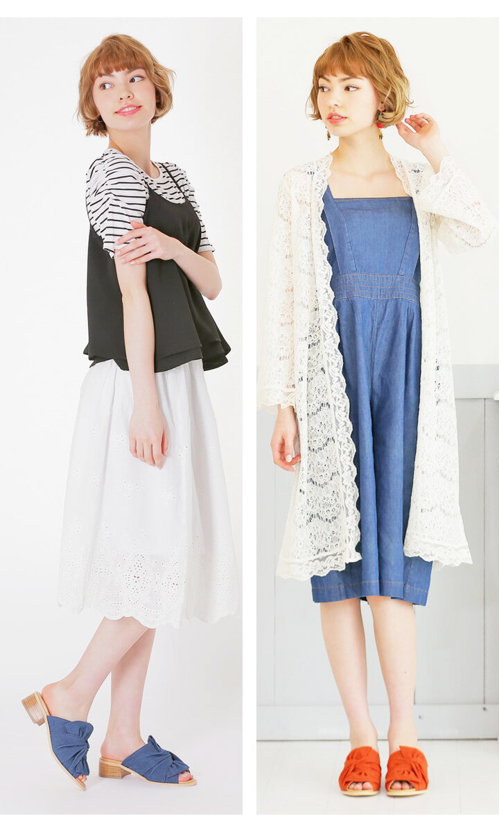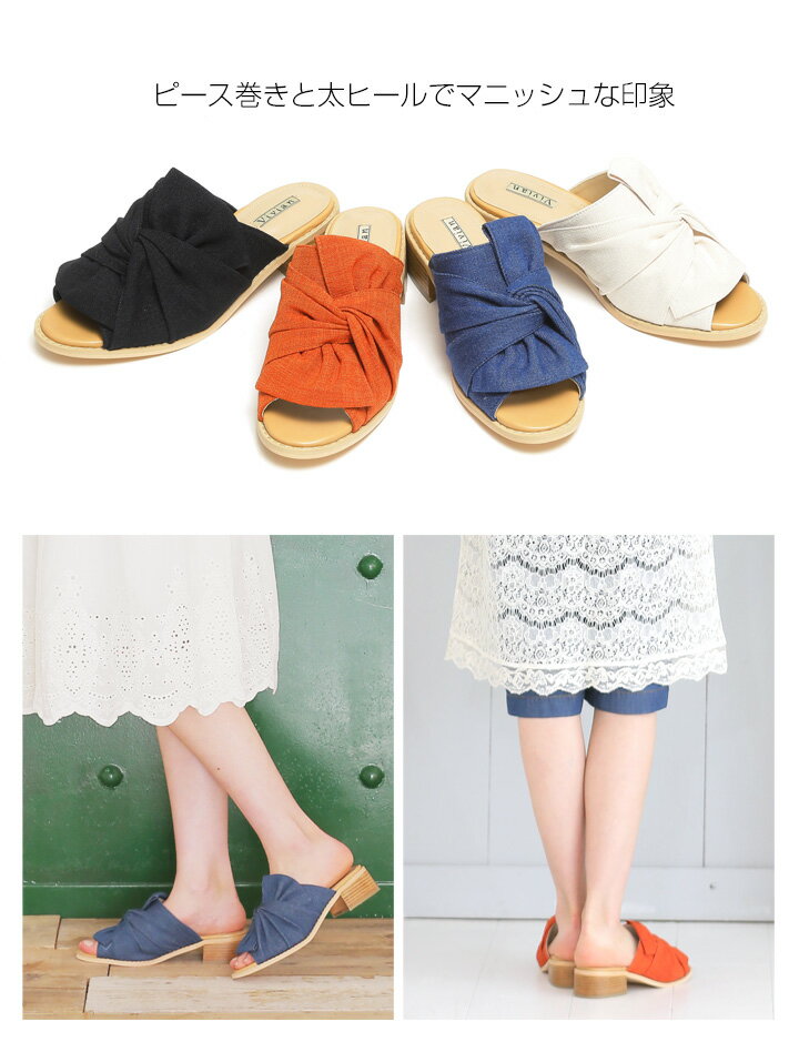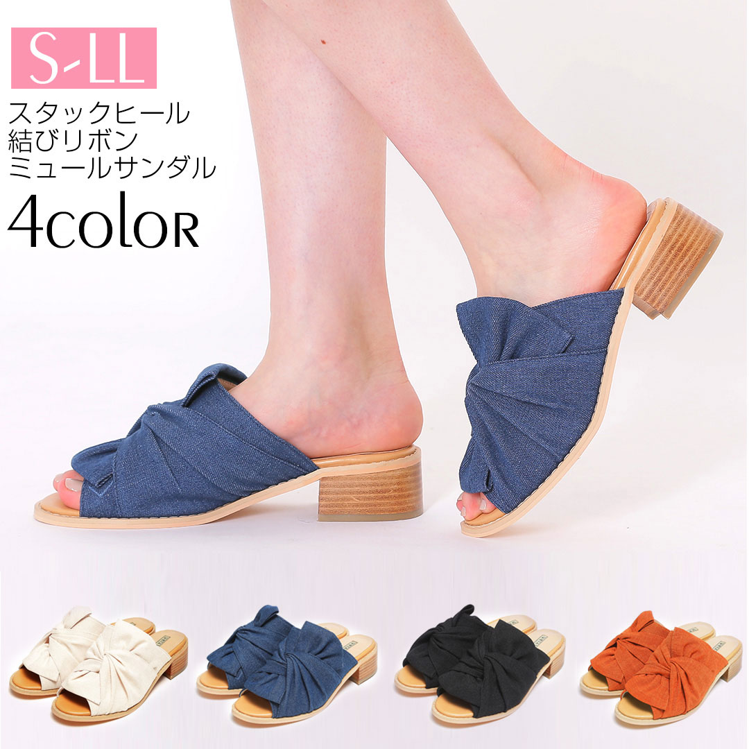 Vivian ヴィヴィアン スタックヒール 結びリボン ミュール サンダル レディース 大きいサイズ 小さいサイズ 歩きやすい 痛くない 夏 低反発インソール ローヒール 黒 ブラック デニム アイボリー オレンジ素材