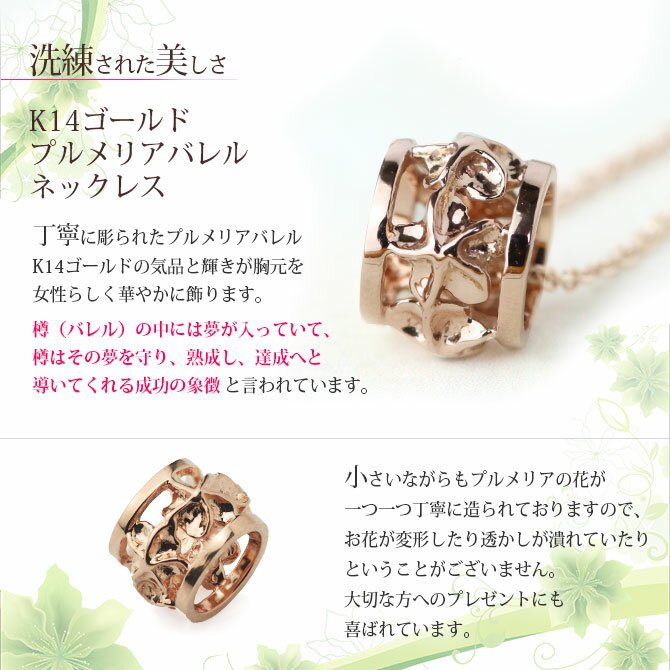 ハワイアンジュエリー ネックレスK14ピンクGOLD・プルメリア透かしバレルネックレスK10Wスクリューチェーン太1mm ご注文後のスムーズなお取引のために ■商品をご注文後、楽天市場から自動送信される「ご注文内容ご確認メール」 とは別に、当店より注文の内容確認のメールを必ず送信しております。