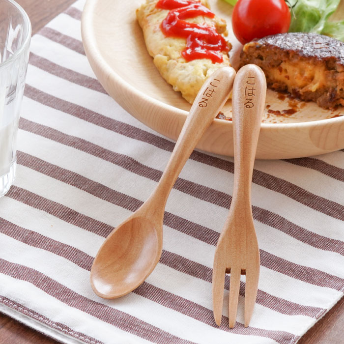 商品情報 【お子様用食器 木製プレート&名入れスプーン・フォーク3点セット】 シンプルな中にも木のぬくもり感じる木製食器セットは、スプーンとフォークに名前を刻むので出産祝いにおすすめです。