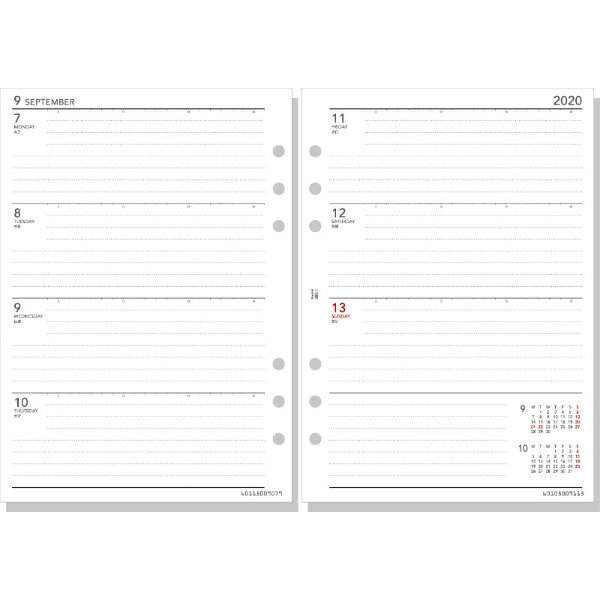 メーカー希望小売価格はメーカーカタログに基づいて掲載しています Keyword 2020年度版 日付入 システム手帳リフィル 2020年週間-2 A5サイズ(デスクサイズ) メーカー希望小売価格1,550円(税別) 品番WAR2052(前年品番:WAR1952) 入数16ヶ月分、2019年12月〜2021年3月 仕様見開き両面1週間・時間目盛付 リフィルサイズ148x210mm(A5サイズ) 特長上質紙時間目盛付なので時間ごとのスケジュール管理がしやすくなっています。