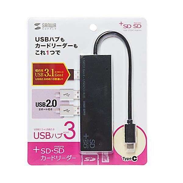 USB Type Cコンボハブ (カードリーダー付き・ブラック) USB-3TCHC16BKお得 な全国一律 送料無料 日用品 便利 ユニーク