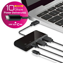 エレコム USBハブ 3.1 PD対応 typeCコネクタ 4ポート バスパワー U3HC-A424P10BK(1個入)【エレコム(ELECOM)】